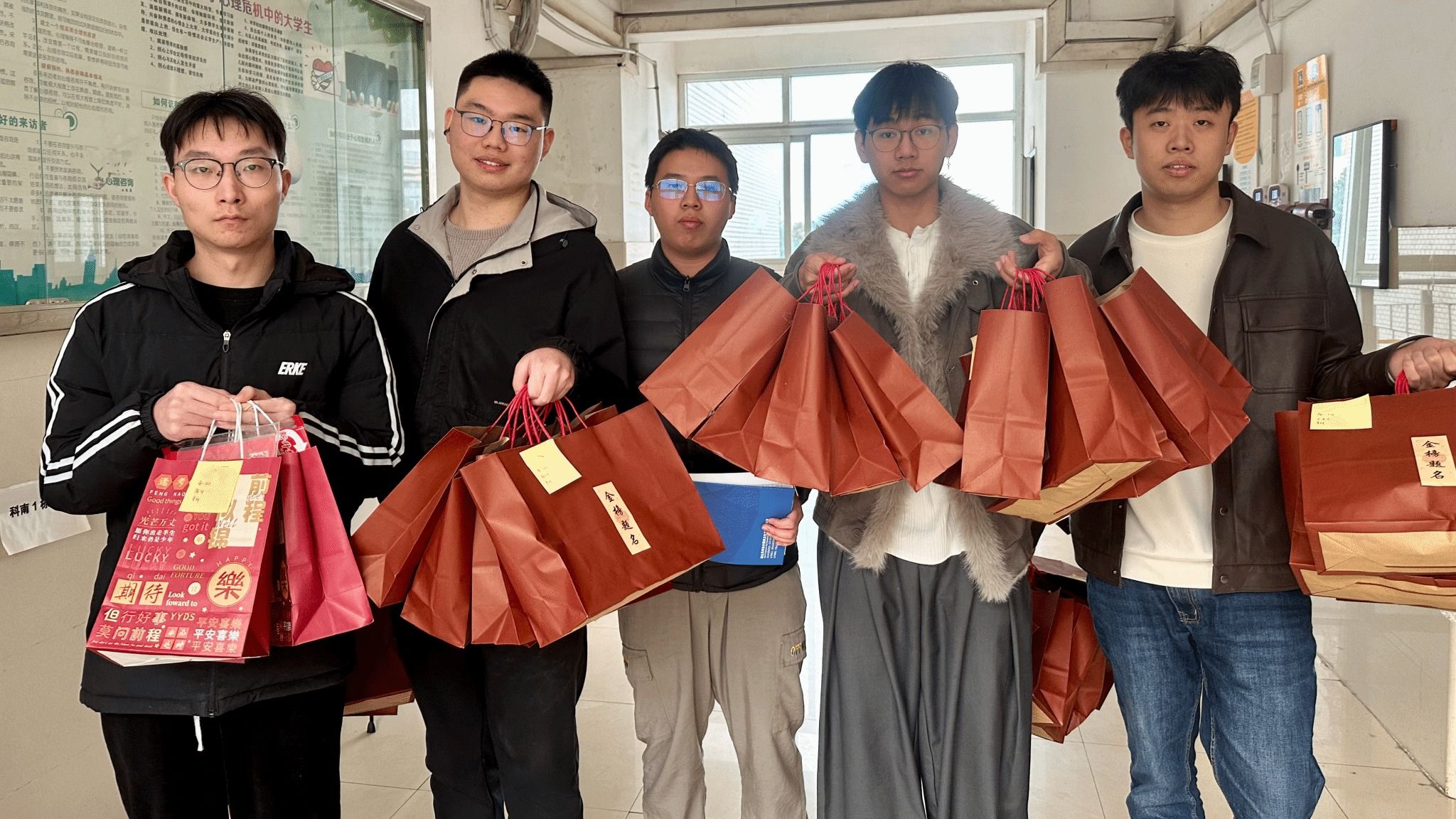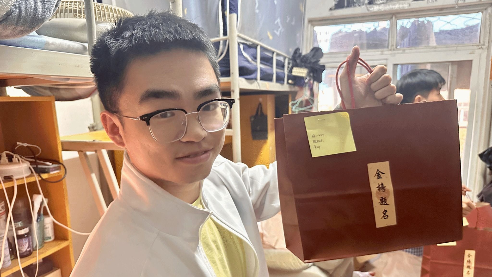 曾宪森表示:“无论是挑灯夜读的考研人、勤学苦练的考公者,还是在就业路上摸索前行的同学,你们的努力与坚持,学院都看在眼里、记在心里。学院永远是你们最坚实的后盾,愿大家都能在逐梦路上披荆斩棘、收获成功!”据悉,曾宪森同学生党员志愿者们将“暖冬礼包”送进每一位备考学生的宿舍,共计151间寝室,把这份满载关怀的温暖精准送到学子手中。