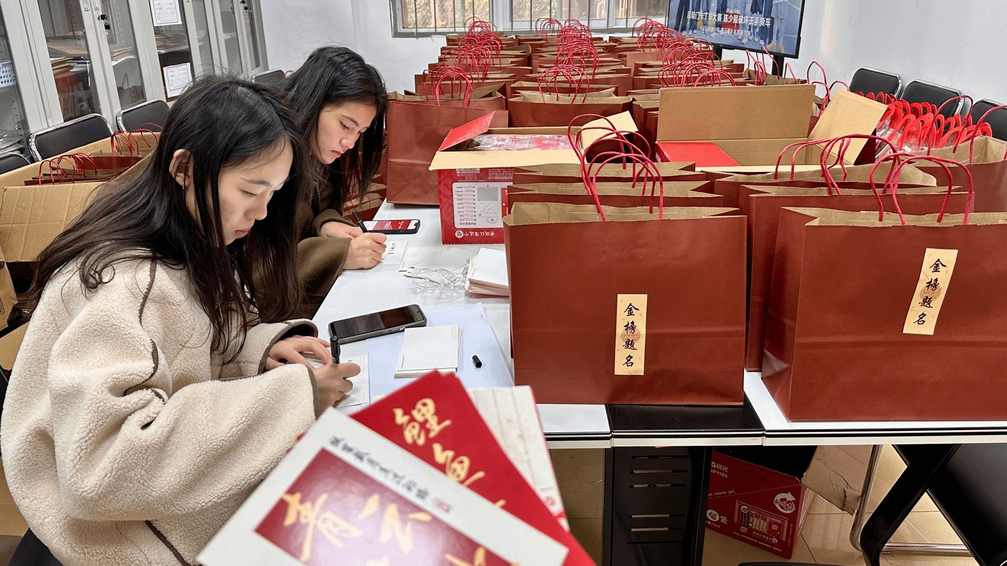 “手写贺卡上的寄语特别打动人,我们打包时也满怀期待,希望这些礼物能为他们驱散冬日寒意、注入奋进力量。”学生党员志愿者代表贾庆陈说道。考研学子孙昊羽在参观完自习室“上岸墙”后深受触动:“看到心仪院校的名字贴在墙上,还有学院准备的加油包,瞬间觉得备考的疲惫都消散了。接下来一定会带着这份鼓励,冲刺到底、一战成硕!”
