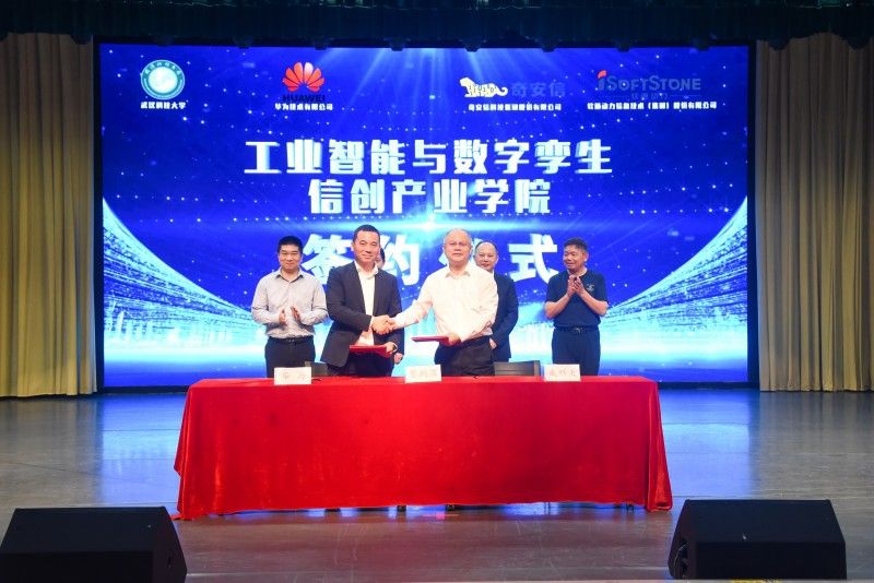 联合华为、奇安信、软通动力三家信创领域头部企业共同建设“工业智能与数字孪生信创产业学院”,签约揭牌仪式在黄家湖校区沁湖礼堂举行。