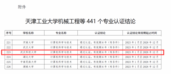 计算机科学与技术专业通过认证,认证时效为6年(2023年1月至2028年12月)。