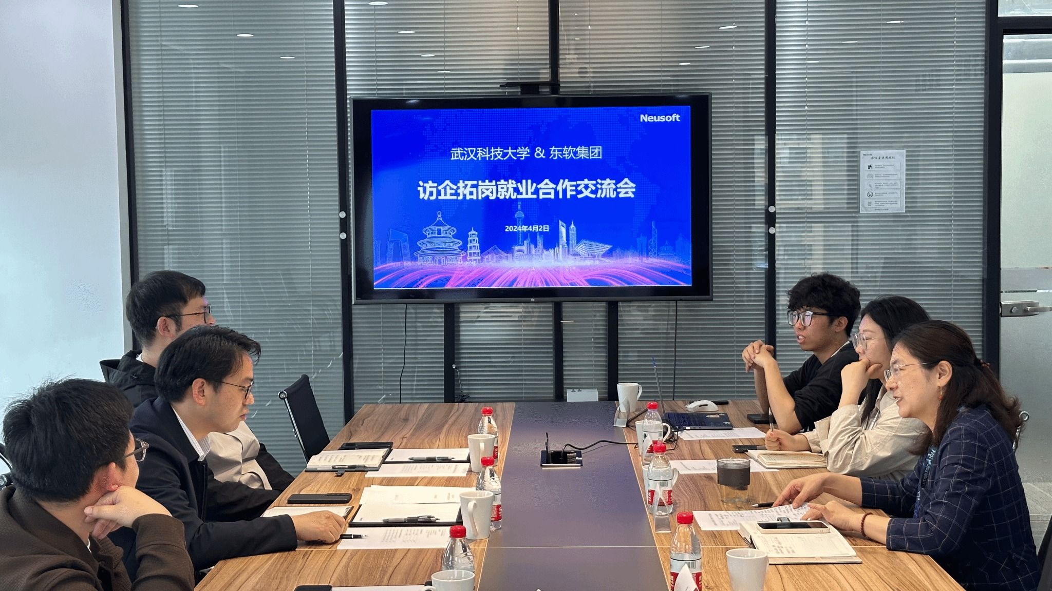 与东软集团(武汉)有限公司就共建大学生就业实习实践基地和联合开展2024届毕业生专项招聘达成共识,下一步将在课程认定置换、产学研合作等方面深入探索合作。