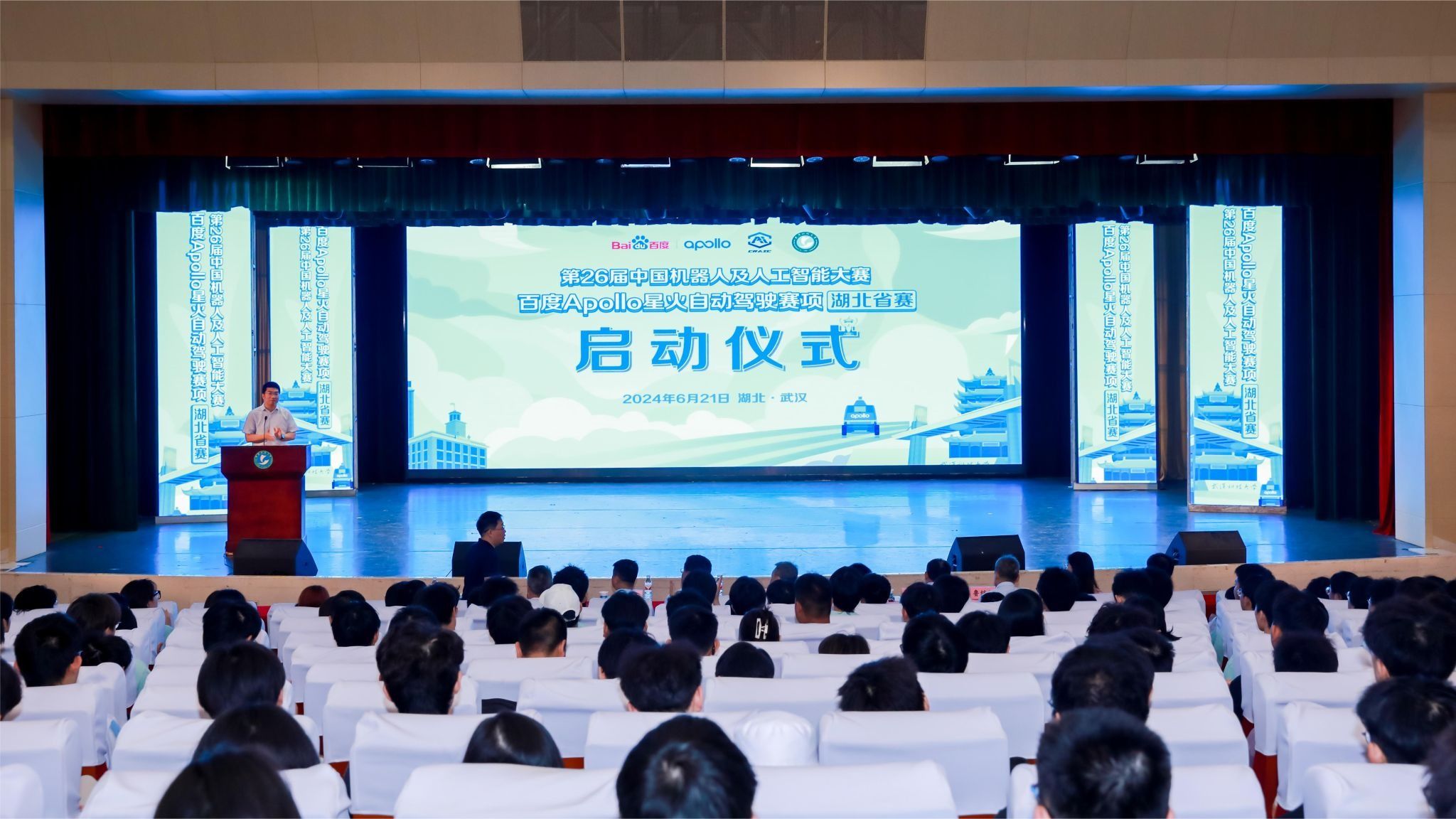黄家湖校区沁湖礼堂隆重举行。中国机器人及人工智能大赛组委会主席朴松昊、执行主任方宝富、湖北省赛负责人鲁统伟,武汉经济技术开发区军山新城双智部部长蓝俊,百度阿波罗自动驾驶平台生态部总经理张亮、百度自动驾驶开放平台产品运营负责人胡旷、武汉科云信息技术有限公司总经理刘天梅,成人短视频