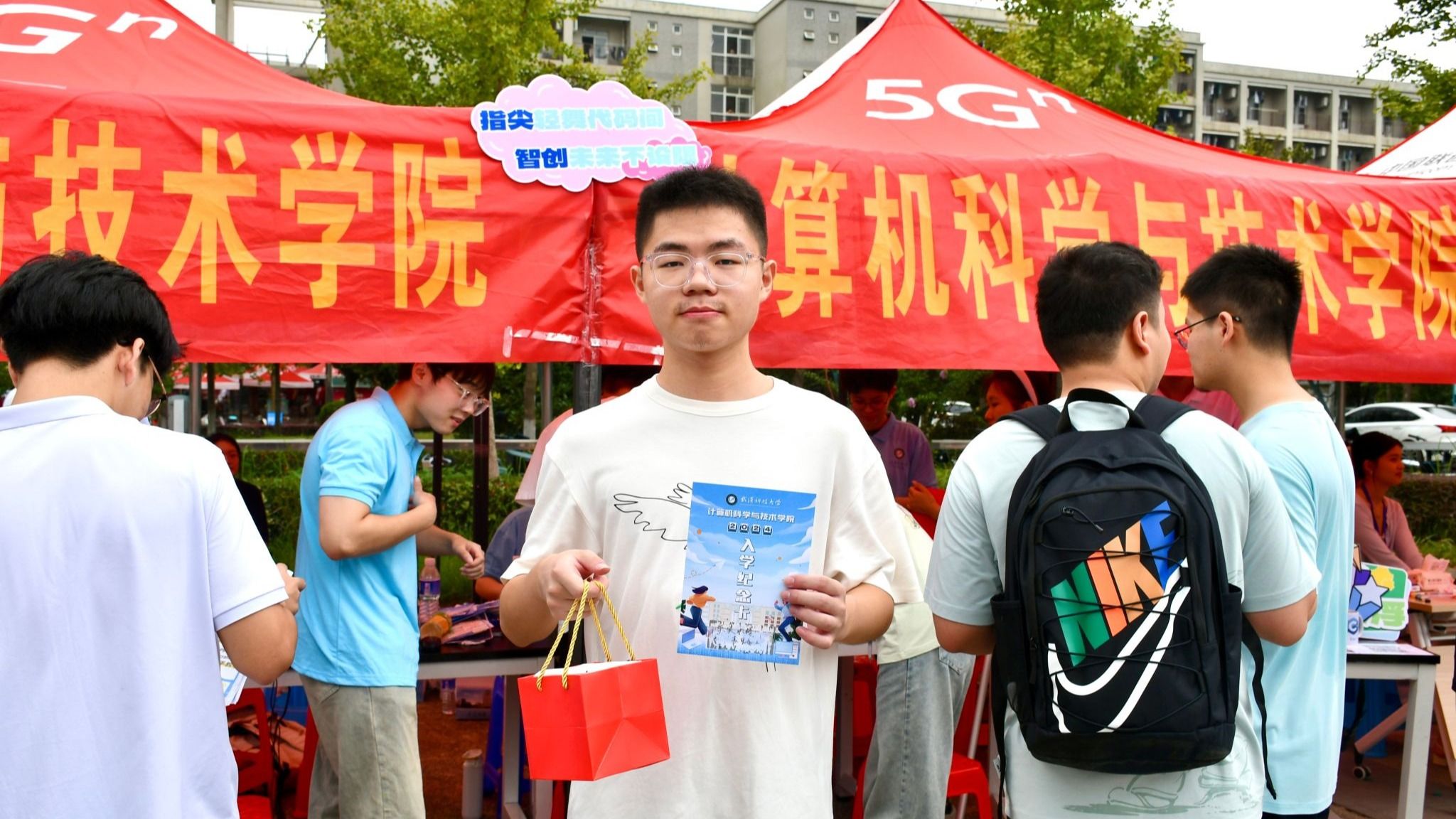在本科生迎新现场,各学生社团竞相绽放光彩,为新生及家长呈现了一场视觉与心灵的双重盛宴。微软俱乐部以科技感爆棚的车辆展示引人驻足,完美融合科技与教育的魅力;攀登者社团则以户外运动的激情,激励新生勇于探索、攀登新高;机器人俱乐部的精彩表演,展现了科技的无限可能与趣味;蔻丁俱乐部的互动小游戏与刮刮乐活动,不仅增进了新生间的了解与友谊,更为迎新活动增添了无限乐趣。2024级本科生辅导员闫昌昊表示:“这些卡片上不仅承载着学院对新生的美好祝愿,更寄托了对他们未来大学生活的殷切期望。”