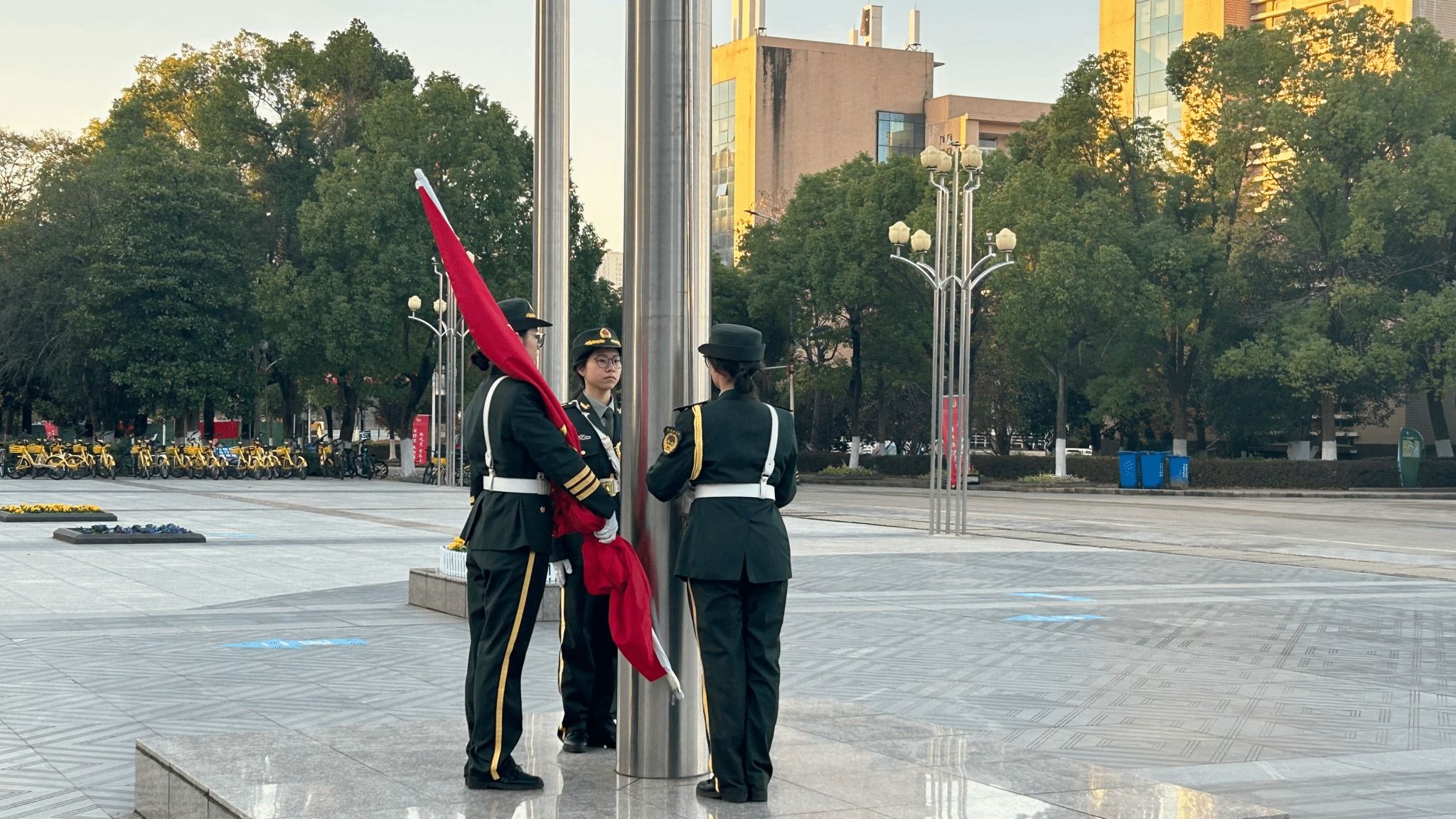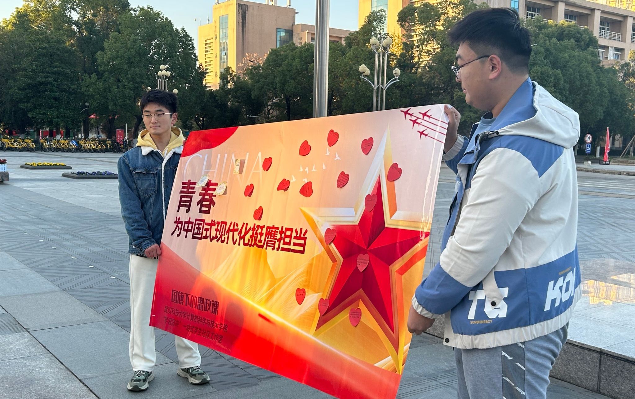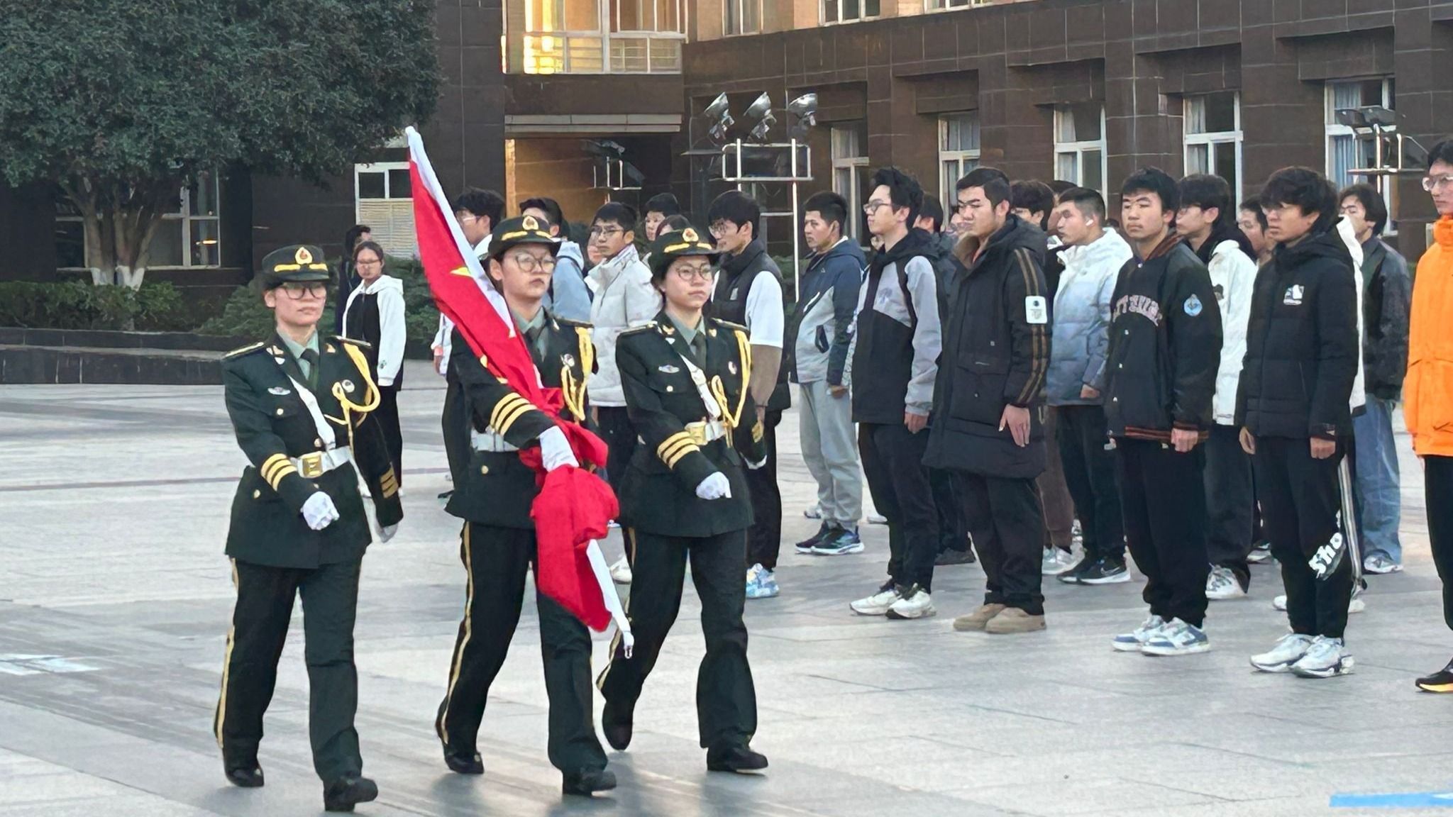 2024级学生代表150余人在黄家湖校区杏坛广场隆重集会,举行升国旗仪式,开展以“青春为中国式现代化挺膺担当”为主题的微思政课。