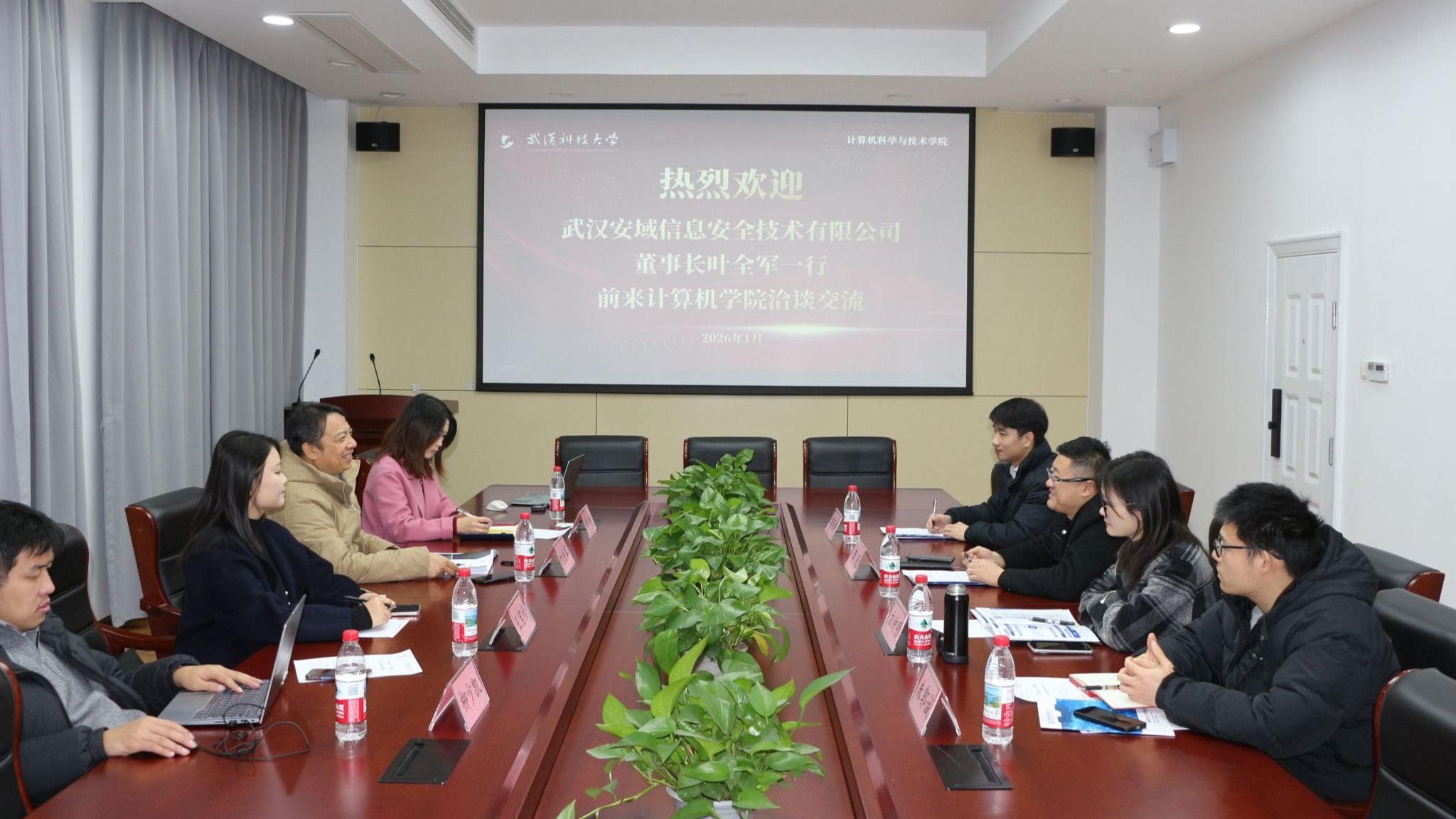 与武汉安域信息安全技术有限公司校企合作座谈会在黄家湖校区30217会议室顺利举办。武汉安域董事长叶全军、技术部总监柳少凯、培训部总监李玲、人资部总监王宝怡等企业代表,成人短视频