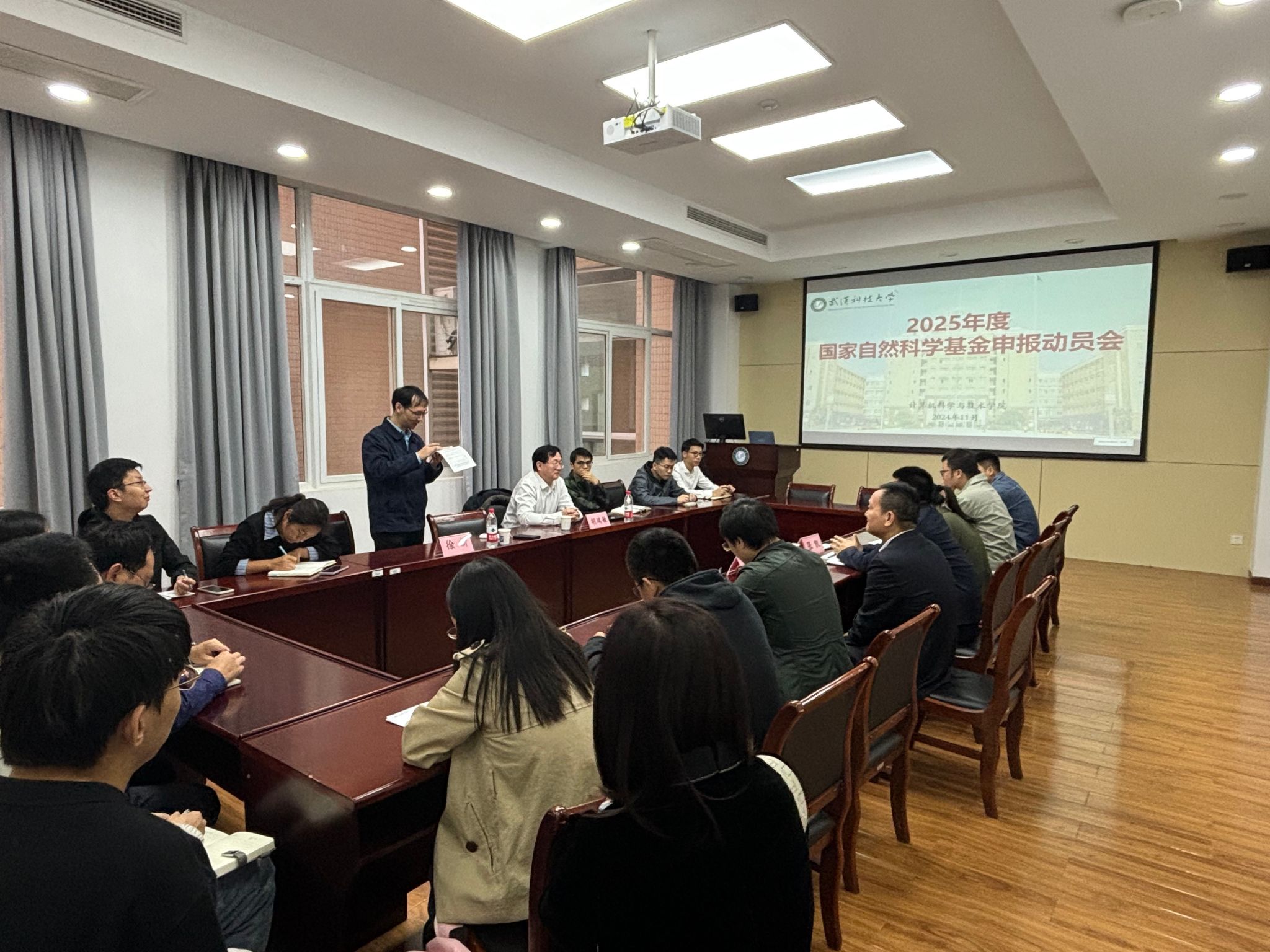 于2024年11月6日上午在黄家湖校区教三楼217会议室隆重召开2025年度国家自然科学基金申报启动会。学院党委书记余淑均、院长张凯、副院长徐新,以及拟申报国家自然科学基金的教师出席会议。会议由徐新主持。
