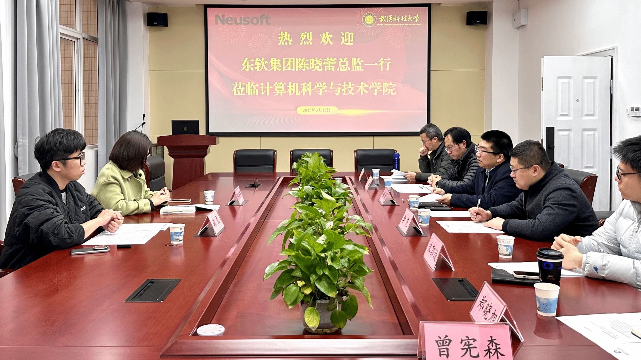 系主任王晓峰、李鹏、本科生辅导员郑晓旭、曾宪森、研究生辅导员朱郭诚就实践教学与企业需求相结合、学生成长计划、实习实训促就业等细节问题与东软集团领导进行了细致讨论,双方达成一致并明确了后续工作安排。